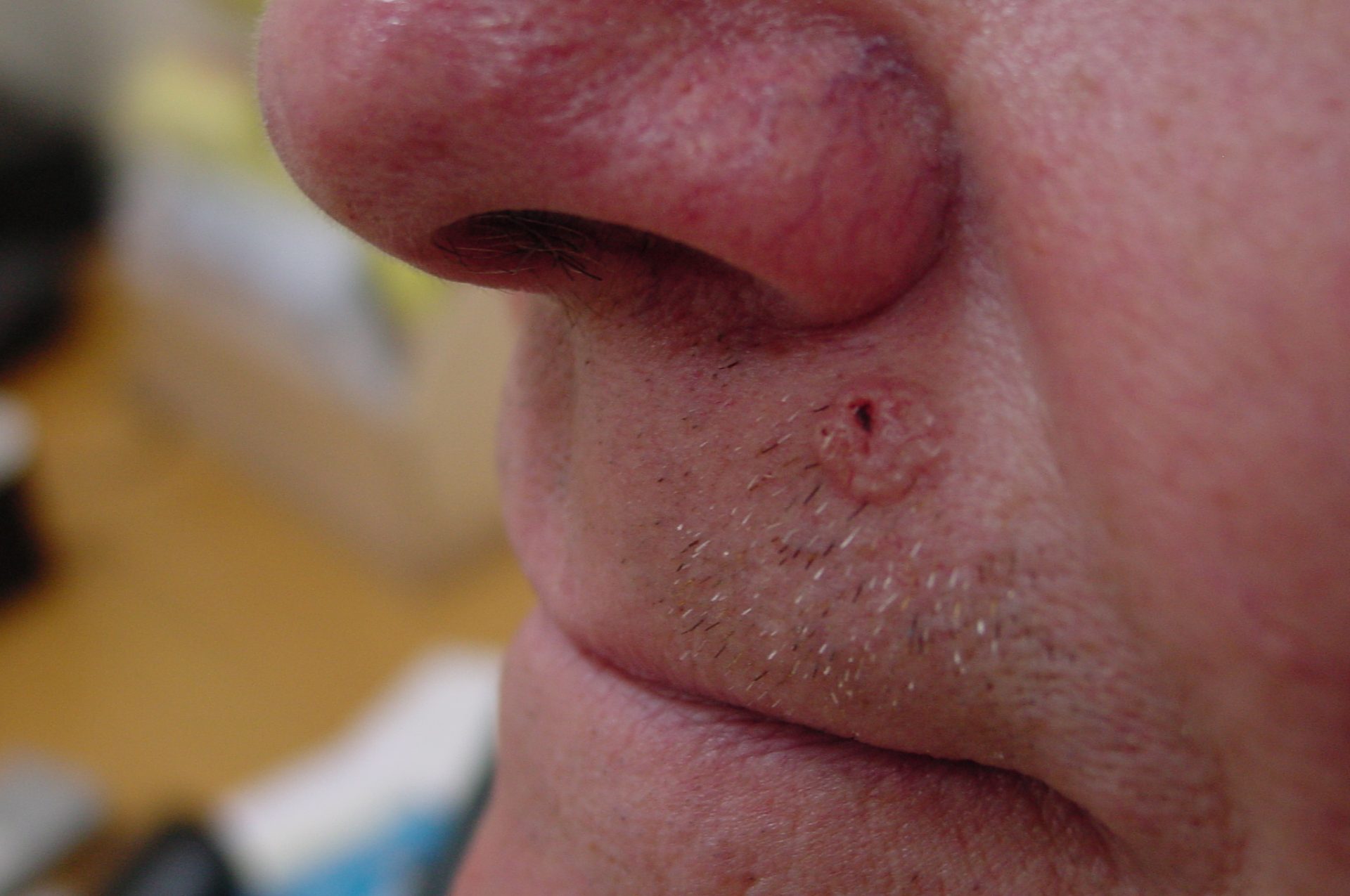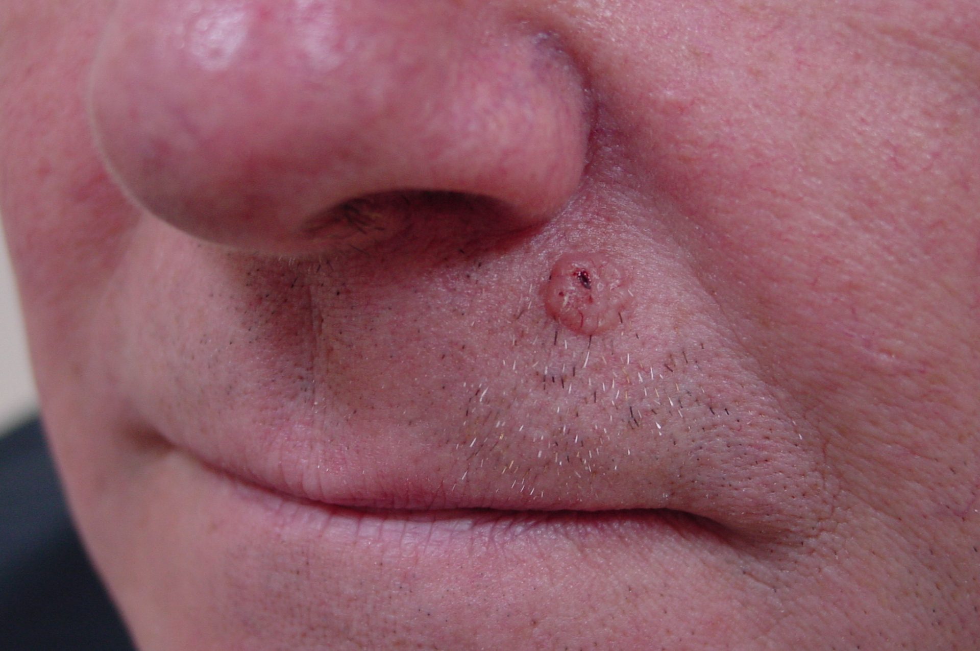 Upper lip reconstruction after recurrent basal cell carcinoma was removed from central upper lip by Mohs surgery