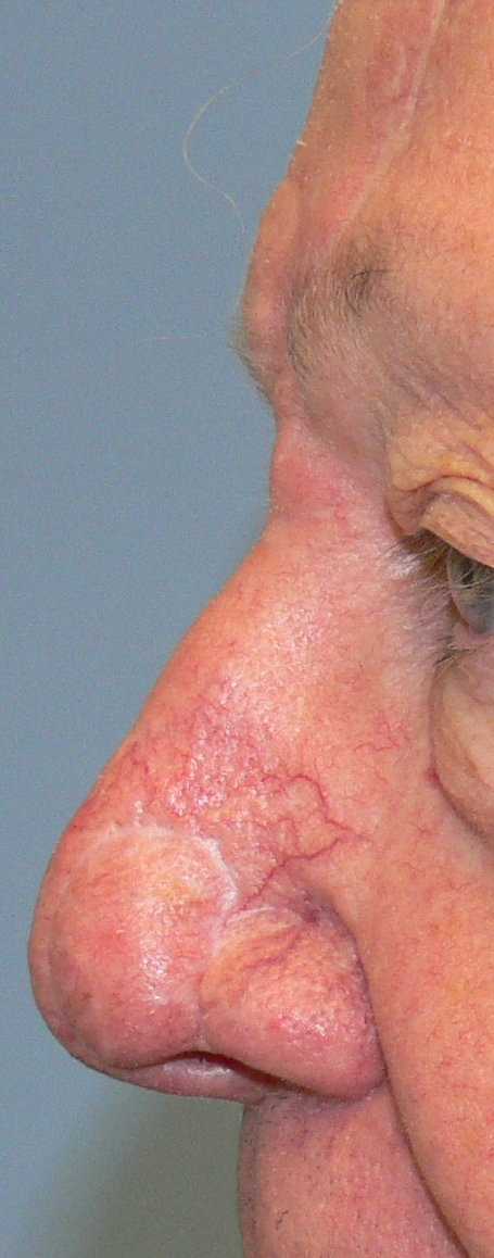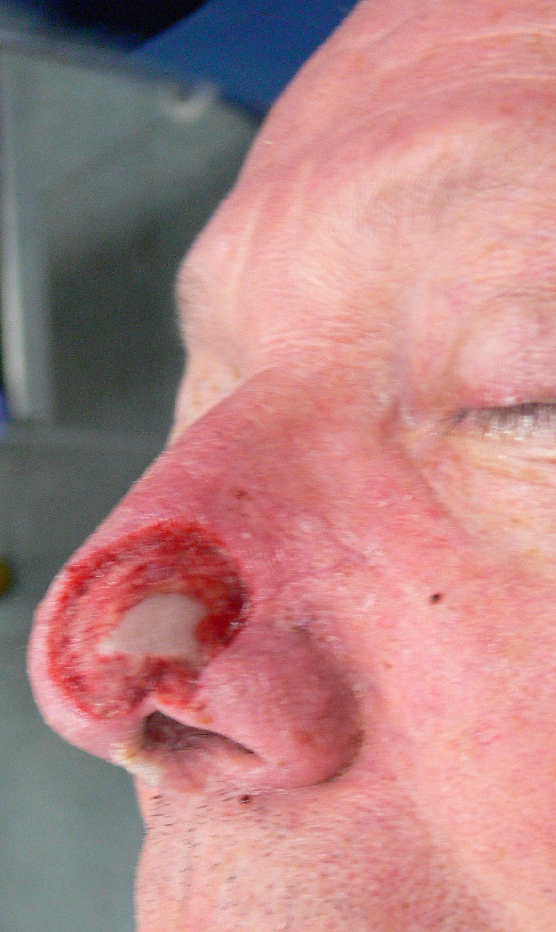 Forehead flap reconstruction after basal cell carcinoma was removed from left nasal ala by Mohs surgery